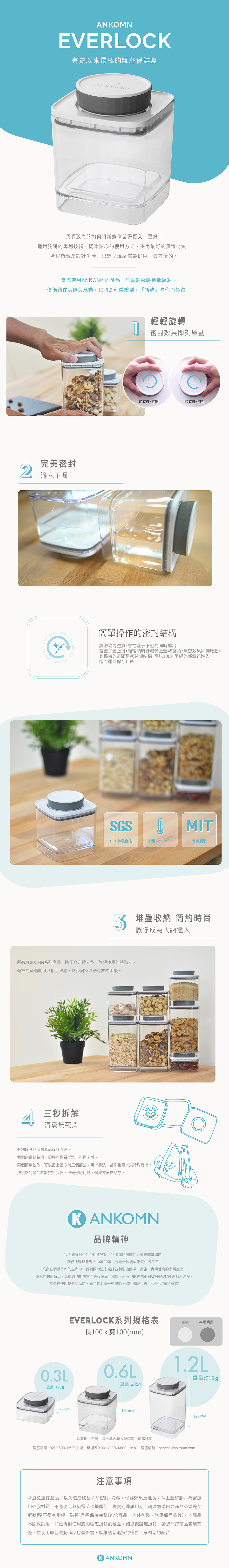 如欲裝粉類,可先使用小袋裝,再置入氣密盒中,可減少靜電產生,讓粉類不易附著於膠條上,降低清洗頻率與增加真空效果。