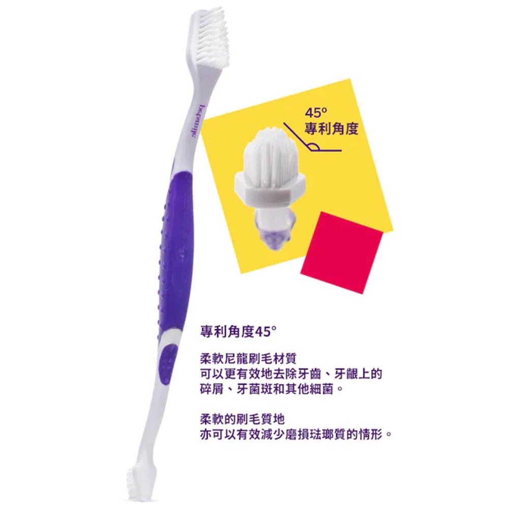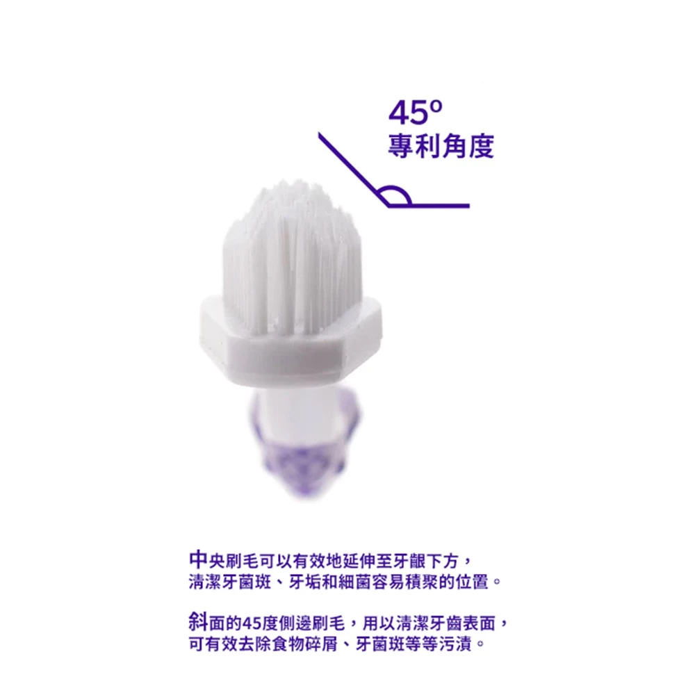 • 專利45°雙頭刷頭設計,貼合牙齒角度更好刷